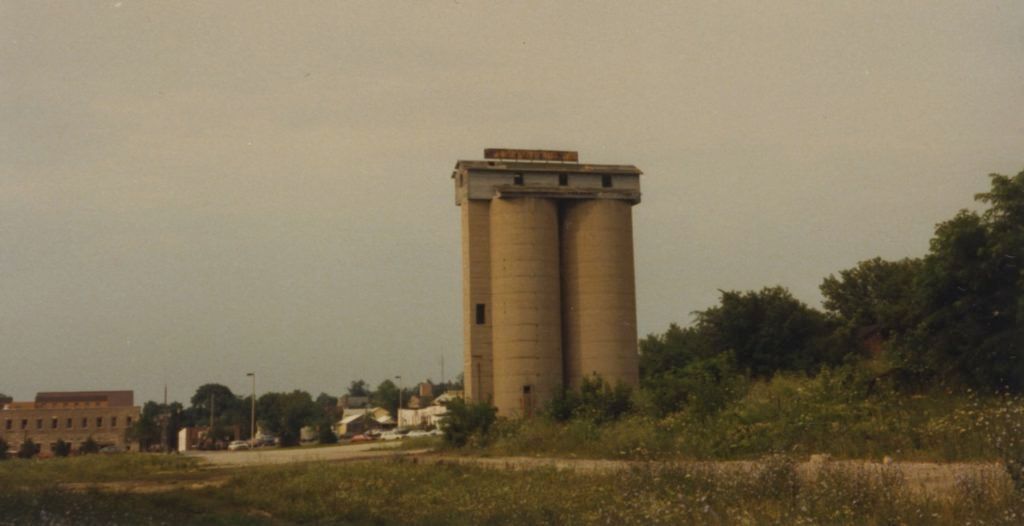 If you were in Geneva before 1995 you recognize this photograph of the former Joshel silos along North River Lane. They were built in 1917 by Mayer Joshel for his coal and feed business on Hamilton Street. The coal dropped from “Hopper Gondolas” into a pit. From there, the coal was taken by bucket conveyer to the top of the silos. Each silo was divided into four compartments and the coal was stored by grades and size. A shut-off handle could be opened to allow the coal to descend via a chute into trucks or wagons. A wooden structure sat on top of the silos – can you imagine the view from inside? The silos sat empty for decades and many people have stories of climbing them. I often dreamt about opening a restaurant at the top. Several options were considered to include the silos in the newly developed riverfront area, but nothing worked. The silos had major structural issues and a strong wind storm blew off pieces of the wooden structure causing hazardous conditions. The silos came tumbling down by a wrecking ball in May of 1995.